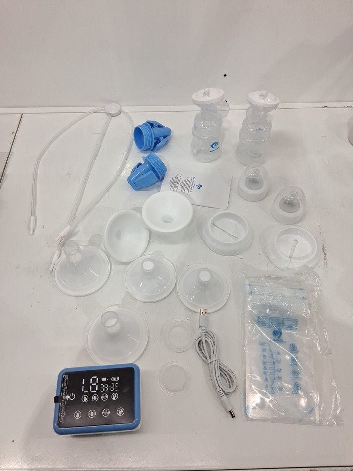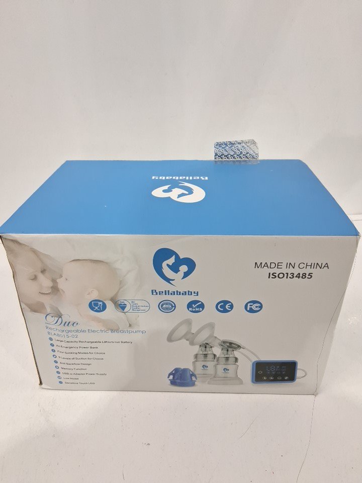Bellababy Portable Electric Breast Pump Set with 4 Modes, 9 Suction Levels, and Touch Controls - 21mm, 24mm, 27mm Flanges - Blue/White (Model: BLA8015-02)