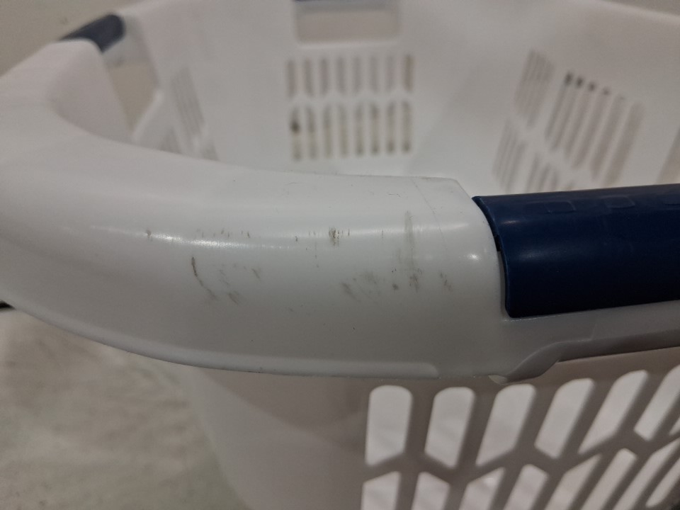 There are some light scuff marks on the basket from being shipped without enclosed packaging, but it otherwise appears new (see photos)
