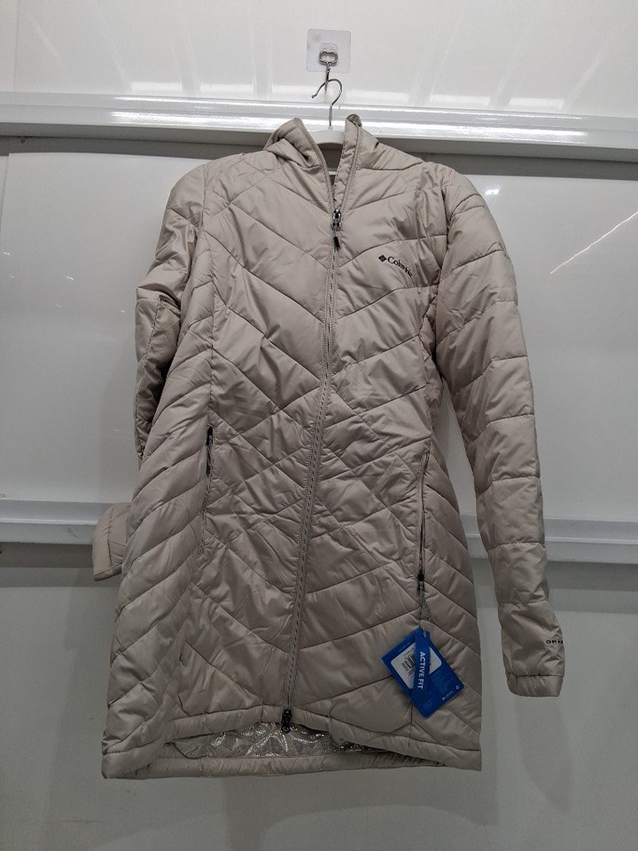 womens columbia heavenly long padded hooded jacket - medium - stone beige