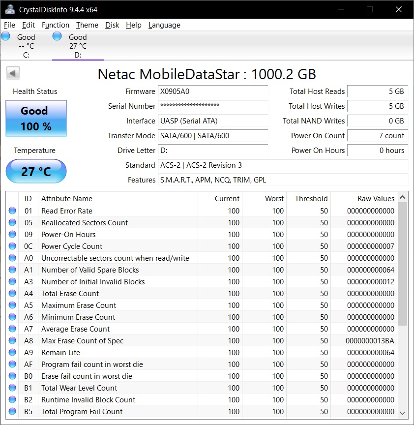 Netac Z Slim 1TB Portable SSD - USB-A Speed Up to 550mbps - USB-C 3.2 Gen 2 Speed Up to 10gbps