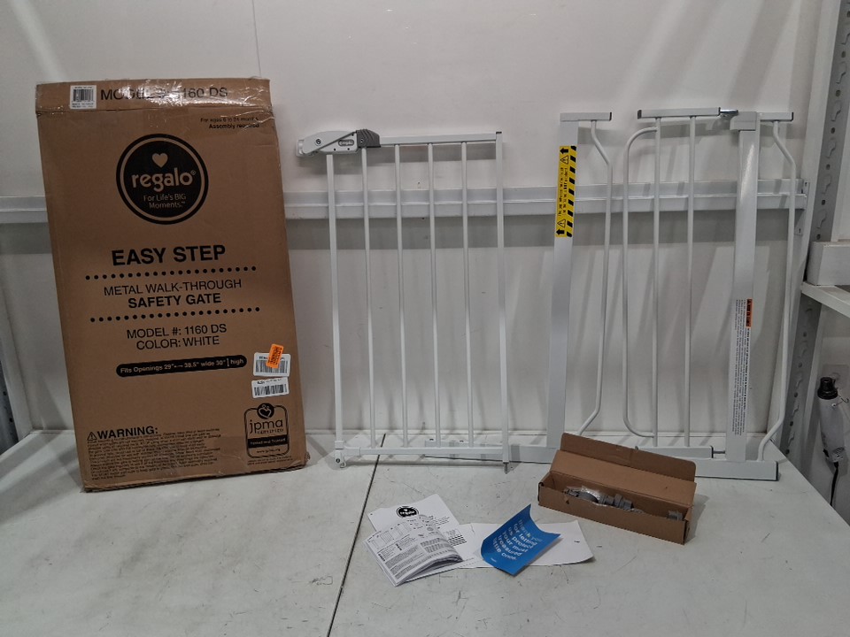 REGALO EASY-STEP METAL WALK-THROUGH SAFETY GATE - 30" x 29'' to 38.5'' - WHITE (MODEL: 1160DS)