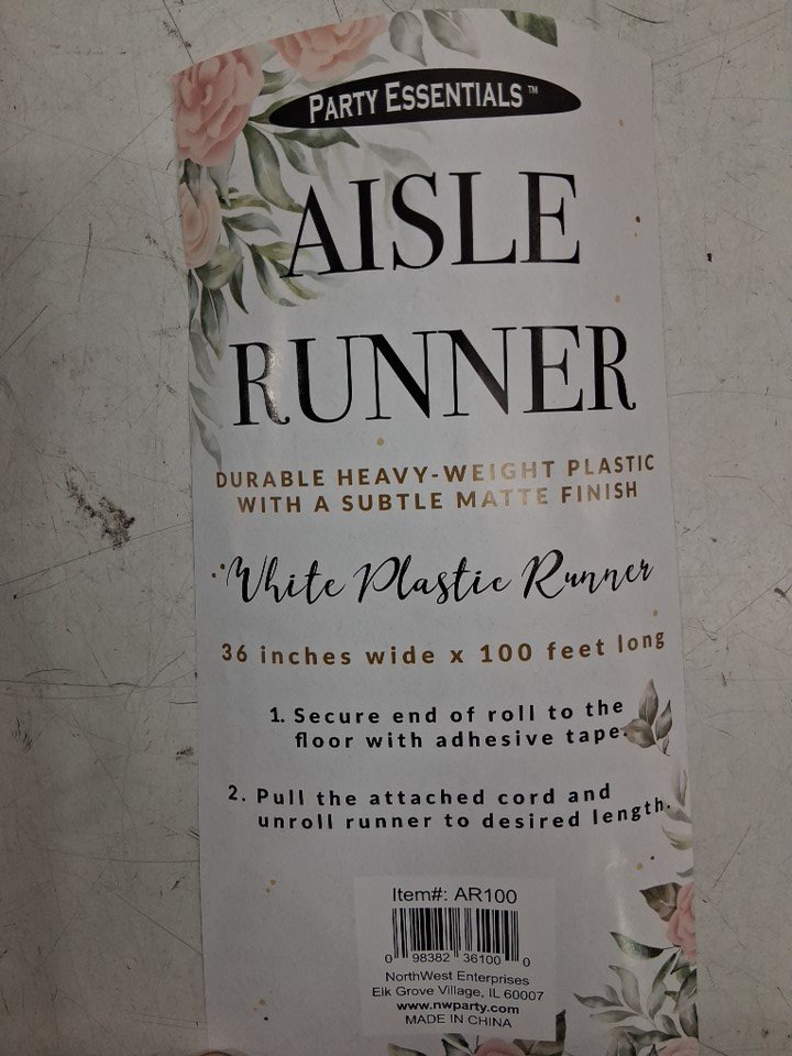 Party Essentials Plastic Disposable Aisle Runner - 3FT X 100FT - WHITE (MODEL: AR100)
