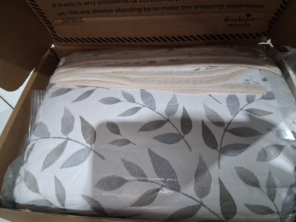 3PC Boho Quilt Set Queen Size Bedding Bedspread Reversible -Patchwork /Light grey