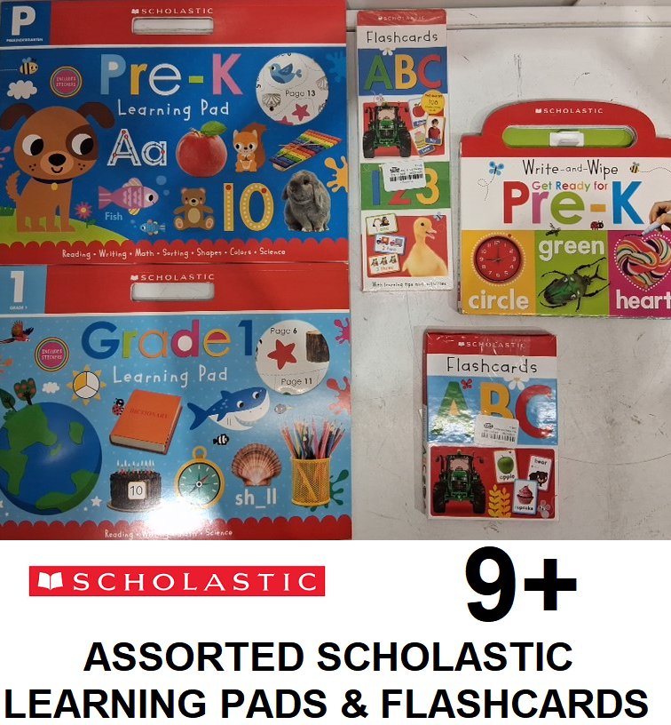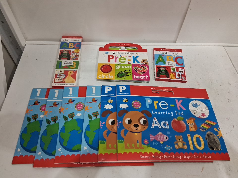 9+ ASSORTED SCHOLASTIC LEARNING PADS AND FLASH CARDS - PRE K TO GRADE 1