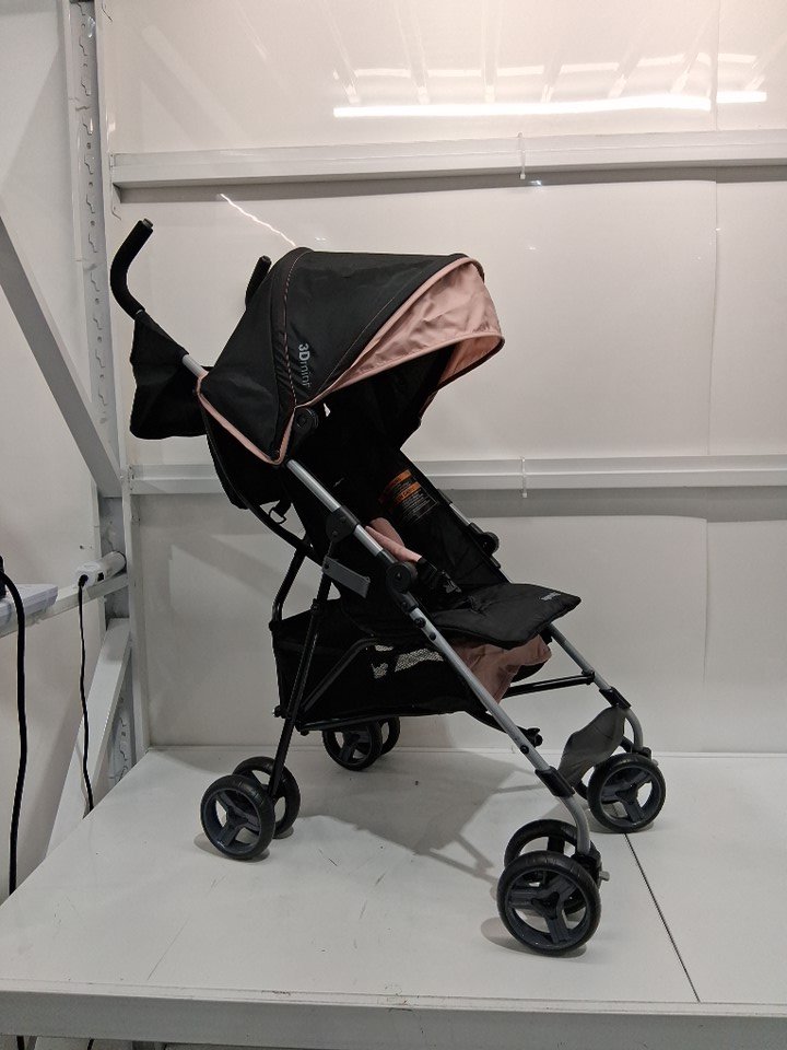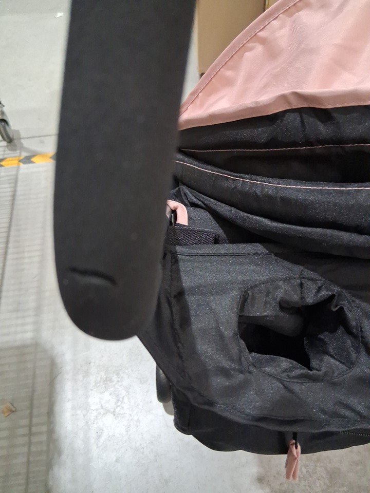 this stroller shows no signs of previous use. the tires look immaculate. however, there are cracks in the foam on the handles. easily fixed with black tape/material. see photos.