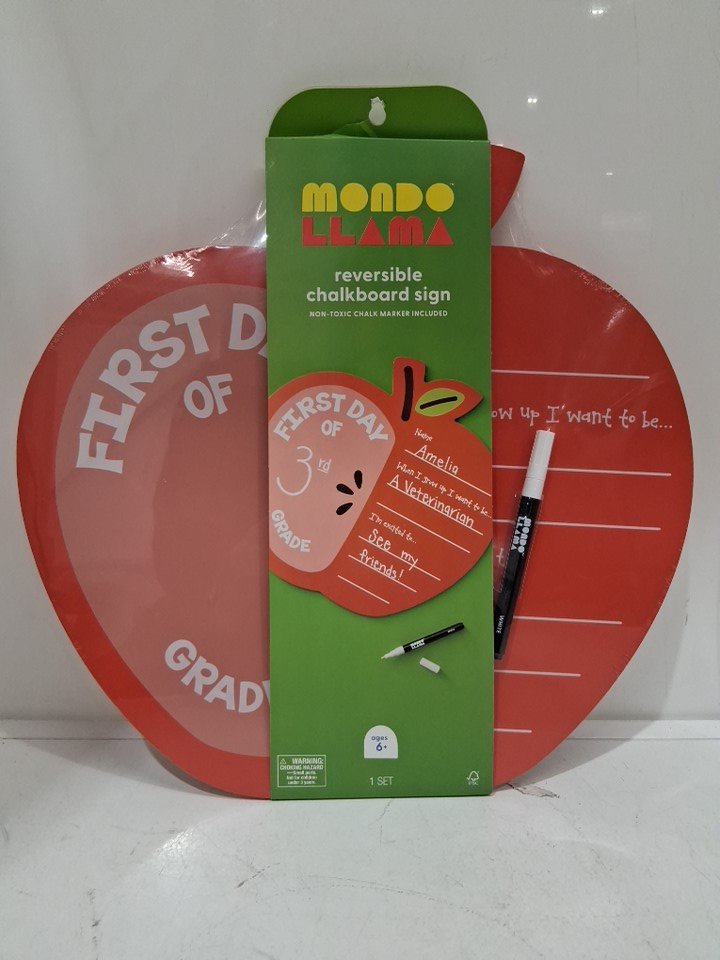 2 Mondo Llama Apple First Day of School Chalk Marker Sign - 14.5" X 15" - RED