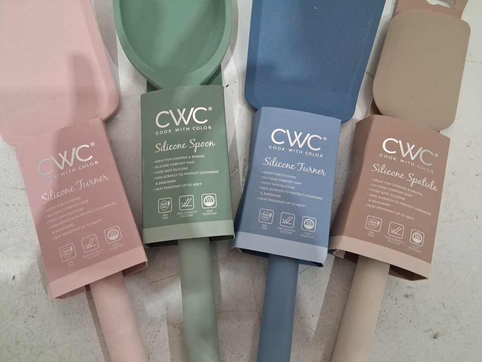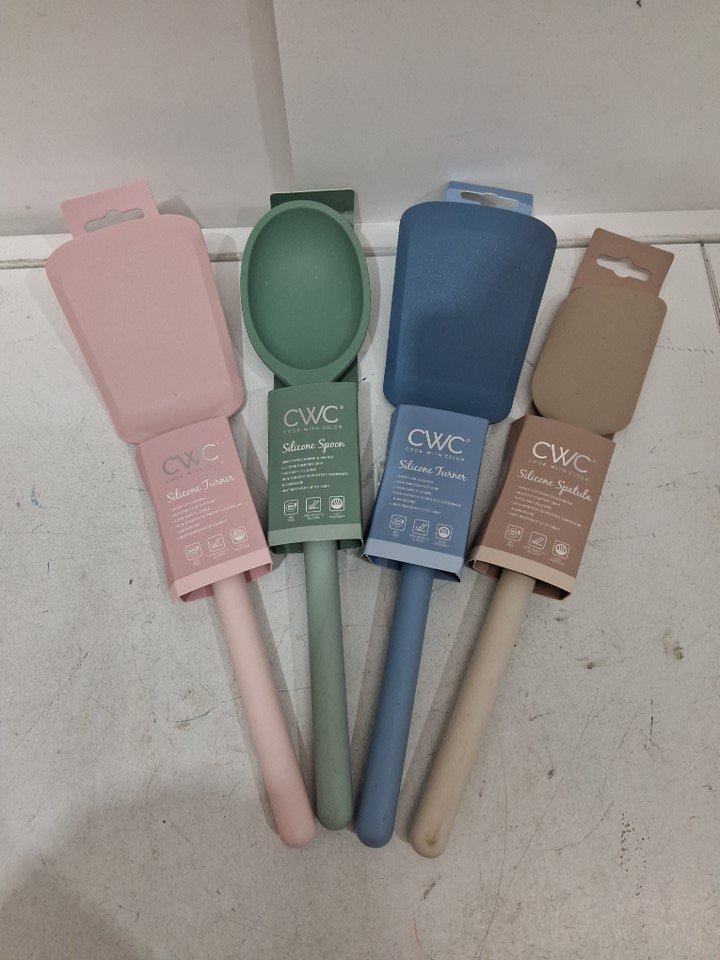 4PC ASSORTED COOK WITH COLOUR SILICONE COOKING UTENSILS - (2) TURNER, (1) SPOON, (1) SPATULA -