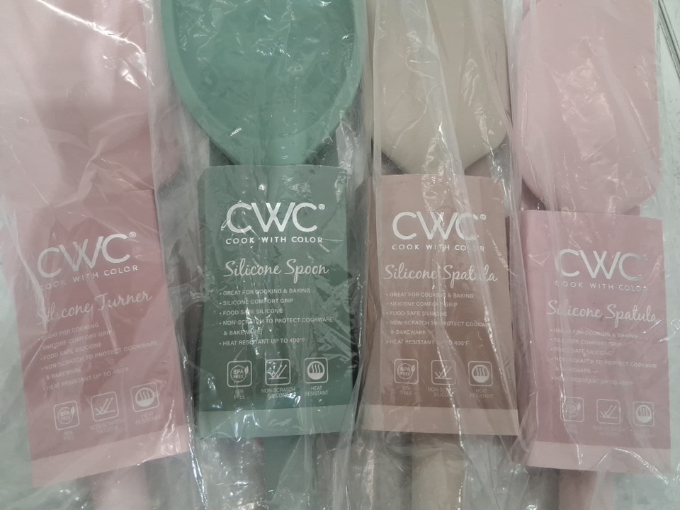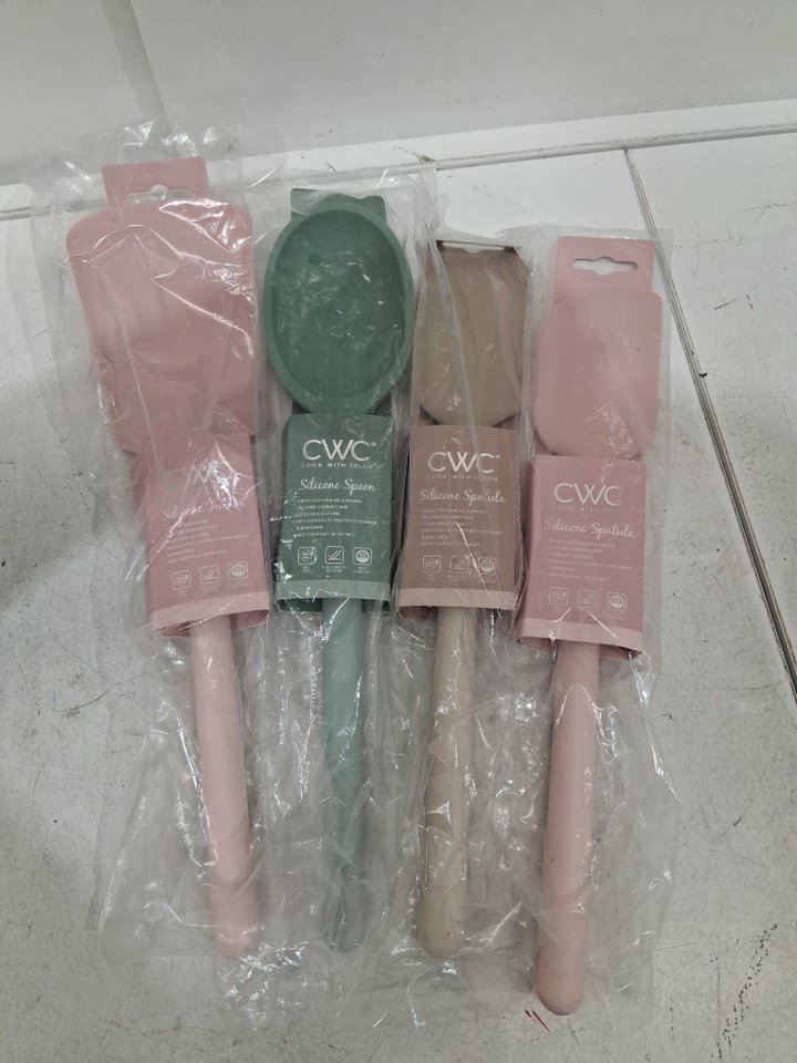 4PC ASSORTED COOK WITH COLOUR SILICONE COOKING UTENSILS - (1) TURNER, (1) SPOON, (2) SPATULA