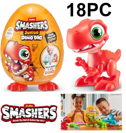 18PC Zuru Smashers Junior Dino Dig - Smash build and learn - Red t-rex (model: 74116A)