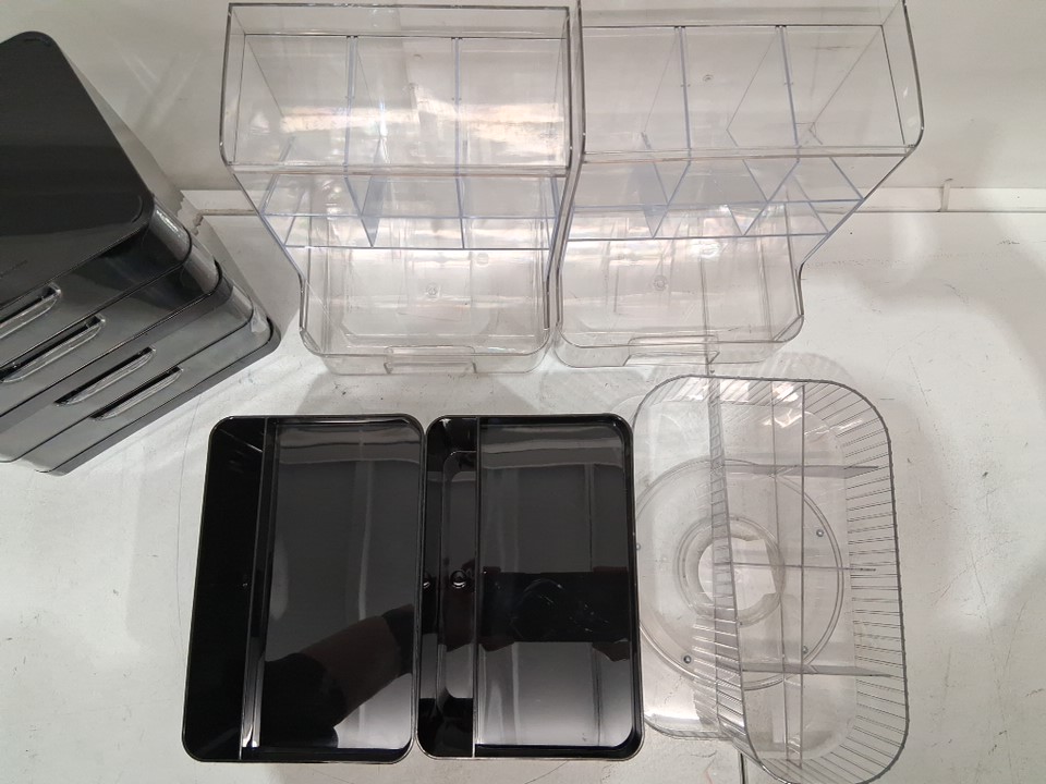 7 ASSORTED OFFICE DESK ORGANIZERS - BLACK / CLEAR