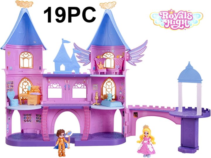 19PC Royale High castle campus playset, 3 floor, 2 exclusive dolls - Multicoloured - (model:RYH0019)