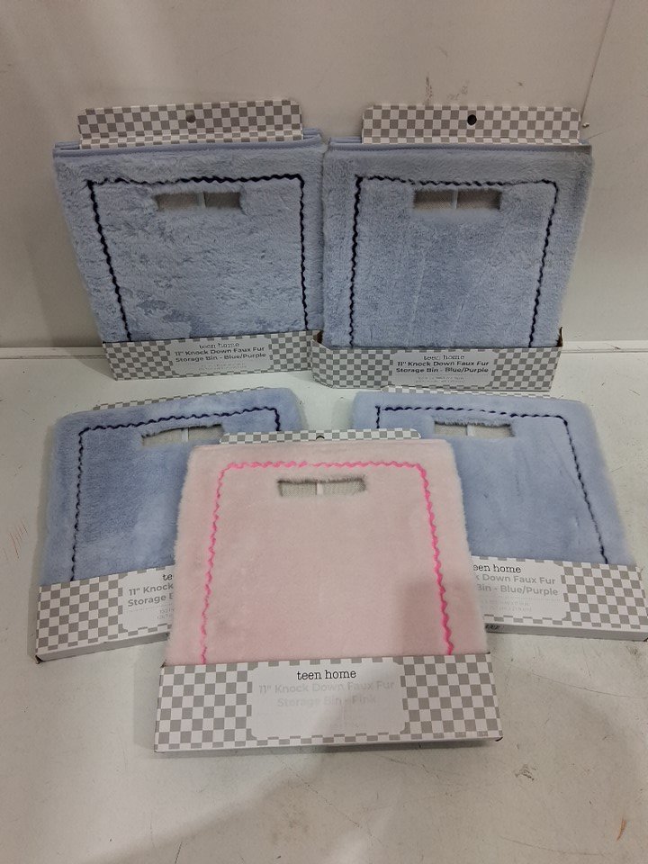 5 ASSORTED TEEN HOME KNOCK DOWN FAUX FUR STORAGE BINS - 11" - PINK / PURPLE