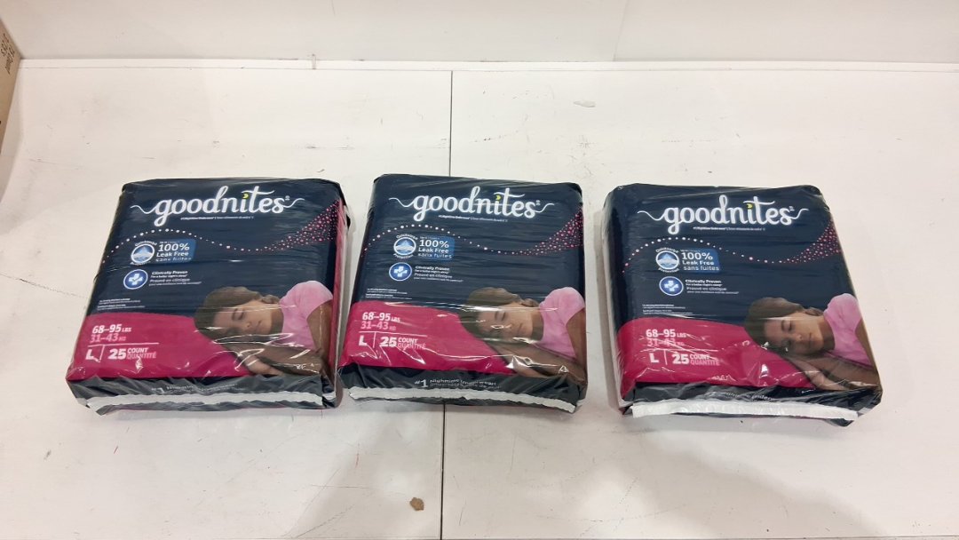 75pk girls Goodnites Nighttime Bedwetting Underwear - LARGE (68-95 lb) - (MODEL: 53372)