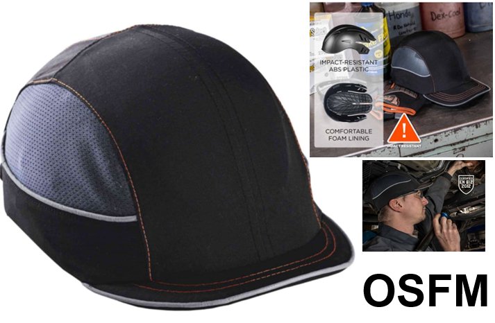 Unisex ergodyne skullerz micro brim baseball hat with Impact resistant abs plastic and foam lining - OFSM - Black/Grey (Style: 8950/8960)