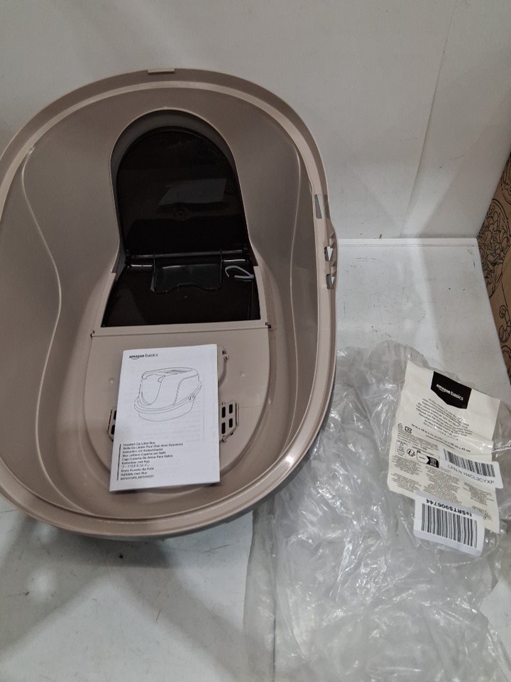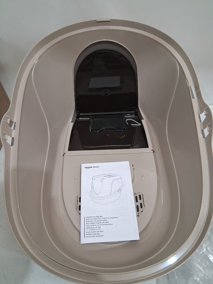 amazon basics no-mess enclosed hooded cat litter box - 24" x 18" x 17" - beige/grey