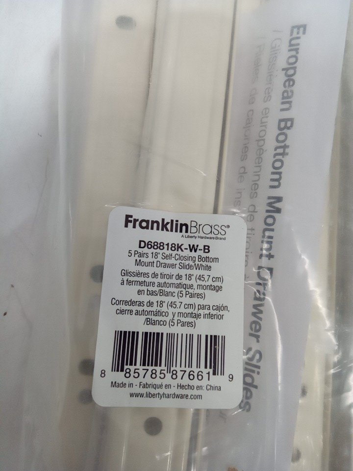 5pk Franklin Brass Self-Closing Drawer Slides Bottom Mount - 18" - 50lb capacity - white - (model: d68818k-w-b)