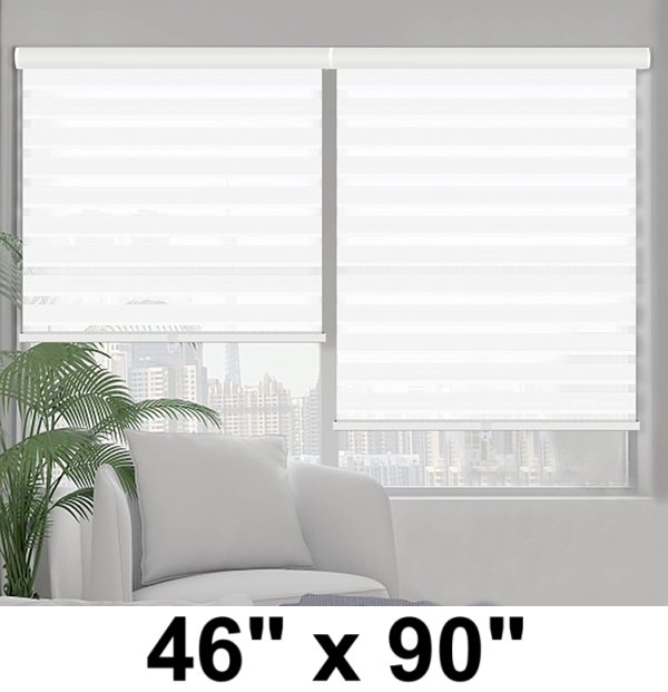 KOKORONA ZEBRA CORDLESS WINDOW ROLLER SHADES/BLINDS WITH SHEER VALANCE COVER - 46" X 90" - WHITE (model: dzstbml)