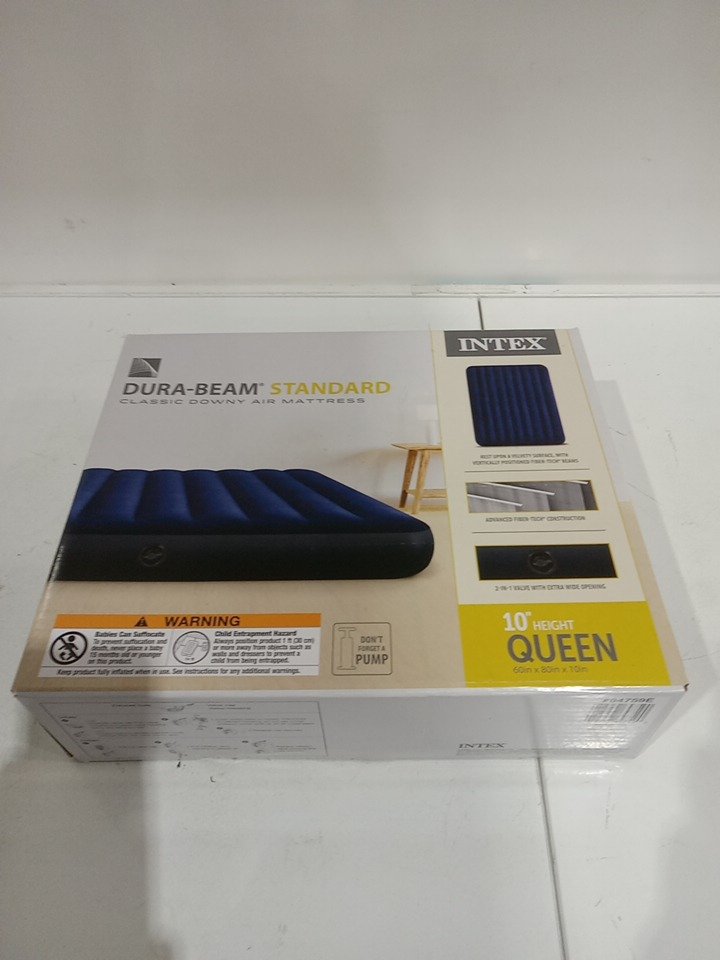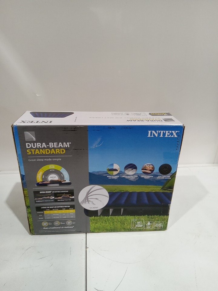 INTEX Dura-Beam Fiber-Tech Vinyl Standard Downy Air Mattress with Plush Top and 2-in-1 Valve - 10" QUEEN - blue/grey