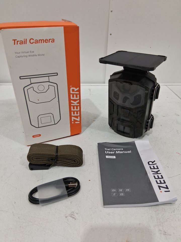 izeeker Solar Trail Camera - 2.7K/1520P hd at 30fps, 36MP, 940nm No Glow Infrared LEDs, Night Vision, Motion Activated, IP66 Waterproof, for Wildlife Monitoring - camouflage (model: ig220)