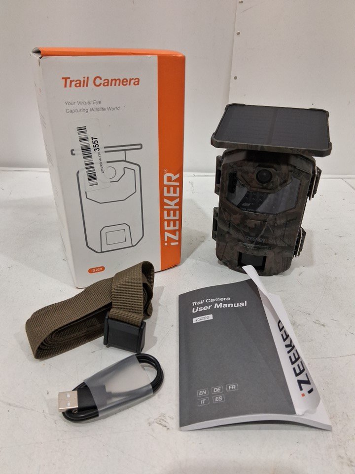 izeeker Solar Trail Camera - 2.7K/1520P hd at 30fps, 36MP, 940nm No Glow Infrared LEDs, Night Vision, Motion Activated, IP66 Waterproof, for Wildlife Monitoring - camouflage (model: ig220)