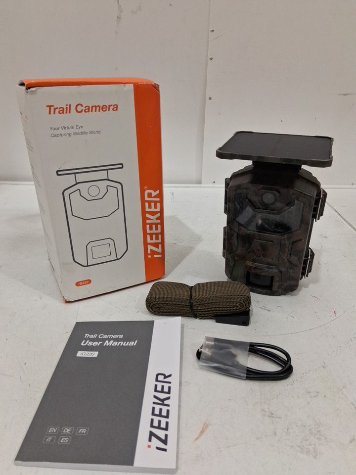 izeeker Solar Trail Camera - 2.7K/1520P hd at 30fps, 36MP, 940nm No Glow Infrared LEDs, Night Vision, Motion Activated, IP66 Waterproof, for Wildlife Monitoring - camouflage (model: ig220)