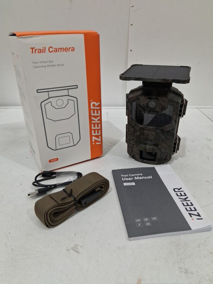 izeeker Solar Trail Camera - 2.7K/1520P hd at 30fps, 36MP, 940nm No Glow Infrared LEDs, Night Vision, Motion Activated, IP66 Waterproof, for Wildlife Monitoring - camouflage (model: ig220)