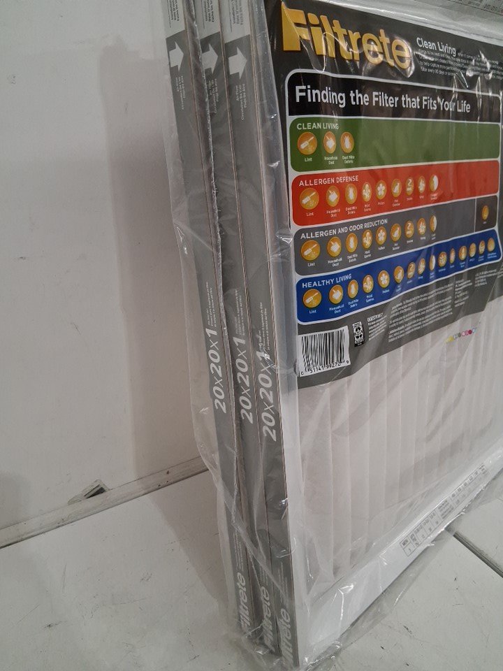 3PK FILTRETE BASIC DUST CLEAN LIVING PLEATED AC FURNACE AIR FILTER - MPR 300 - 20" X 20" X 1" - WHITE