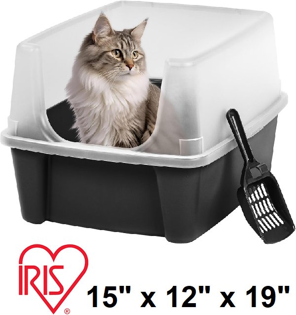 IRIS Open Top Cat Litter Box Kit with Shield - 15" x 19" - BLACK/CLEAR - (MODEL: CLH-12)