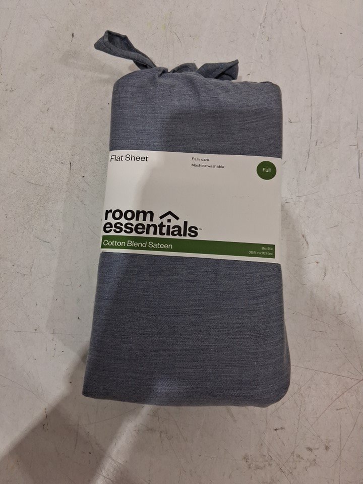 4PC Room Essentials Easy Care Cotton Blend Sateen Sheet Set - FULL - Navy Heather -