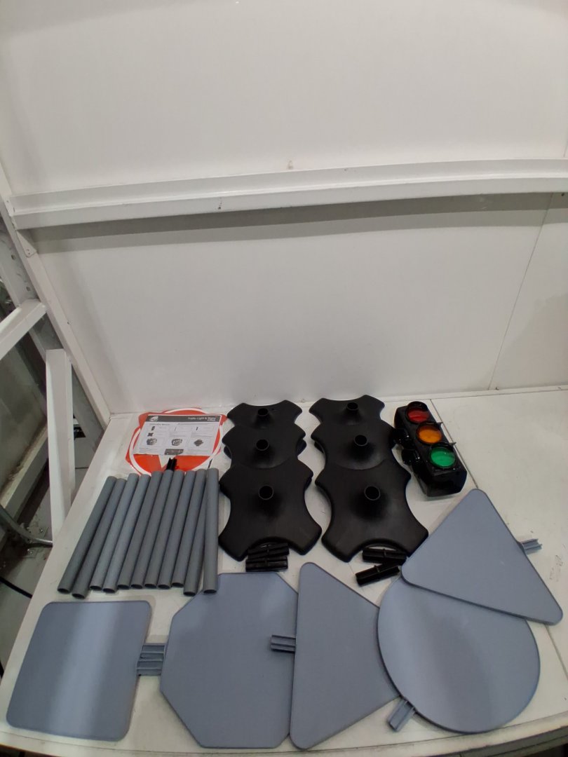 3 of the signs have scuff marks on them and one of the bases has a hole in it. Tested for power.