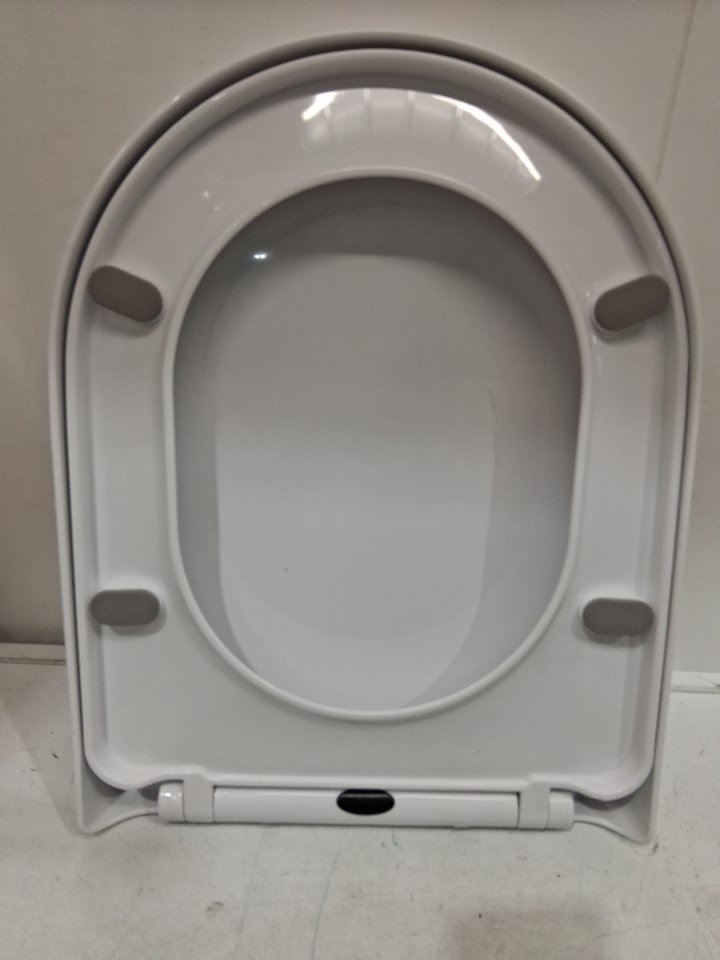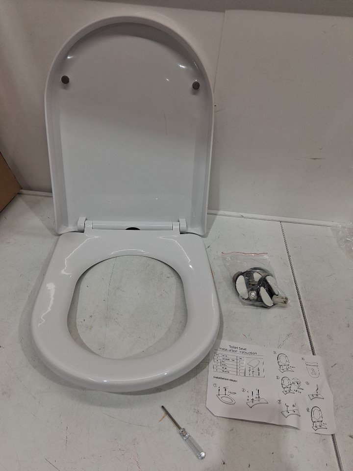 XUXRUS ELONGATED "D" SHAPE TOILET SEAT WITH QUIET-CLOSE and ADJUSTABLE HINGE, EASY CLEAN, QUICK RELEASE LID, 18" - WHITE (MODEL:GD-D015)