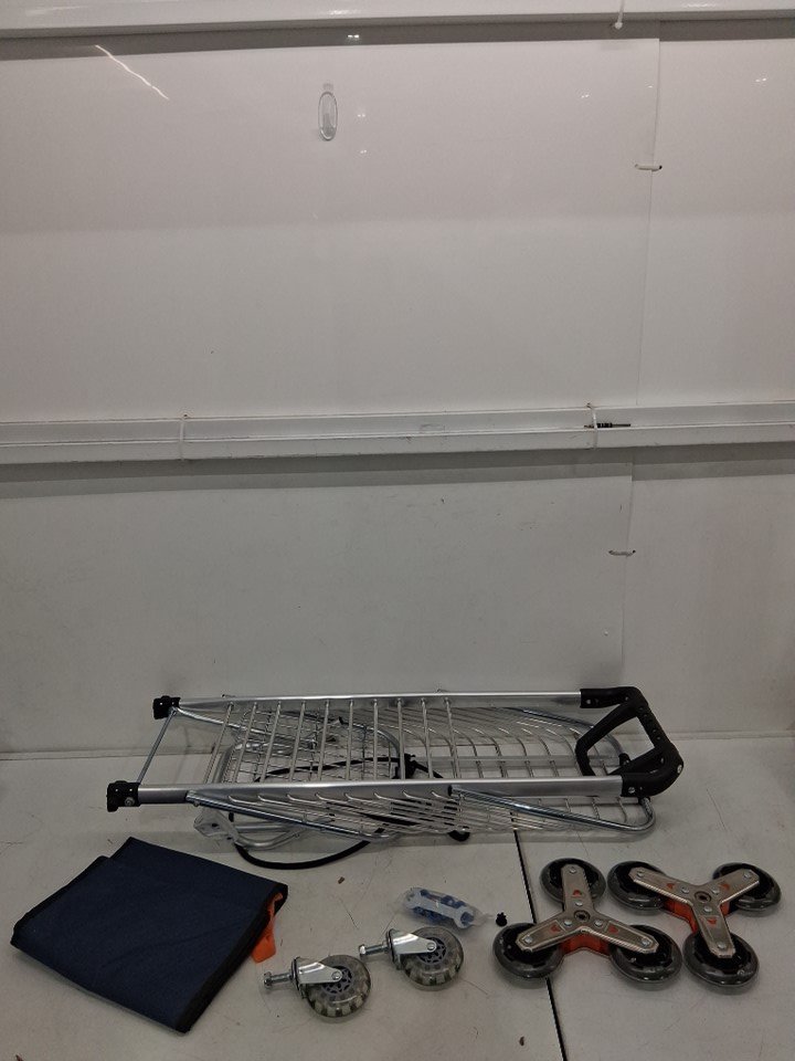 Jomifin durable foldable shopping trolley with 8 wheels and stair climbing ability and removable washable bag - 35l - silver/navy blue