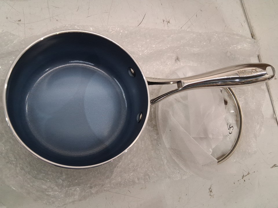 Ceramic coating on small pot distressed likely caused during manufacturing. (See photos)
