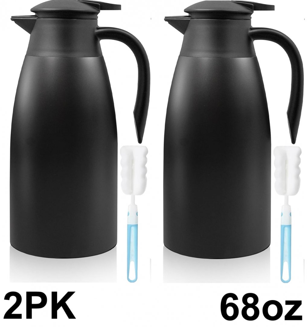 2pk Vivaplex Stainless Steel Insulated Thermal Coffee Carafe - 68 oz - black