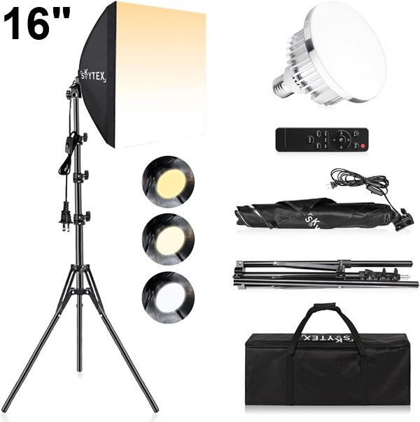 SKYTEX Softbox Lighting Kit WITH CARRYING BAG -16" x16" - 85W 2700-6400K - BLACK/SILVER (MODEL: LED4040-US)