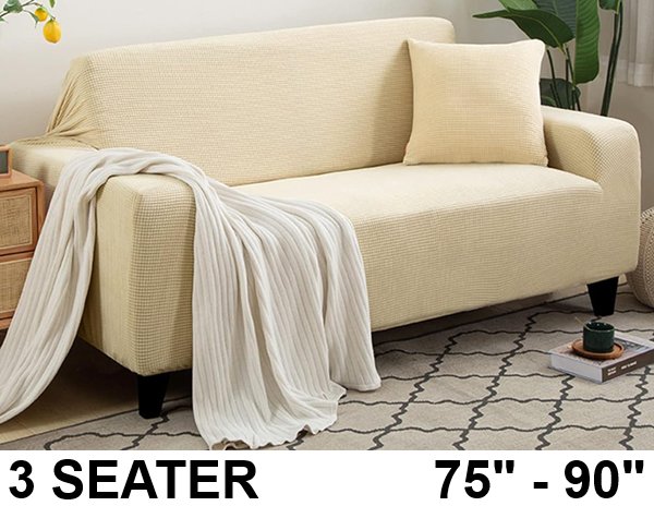 IMYOGI High Stretch 3-SEATER Sofa Cover Slipcover - 75" - 90" (190-230CM) - CREAM