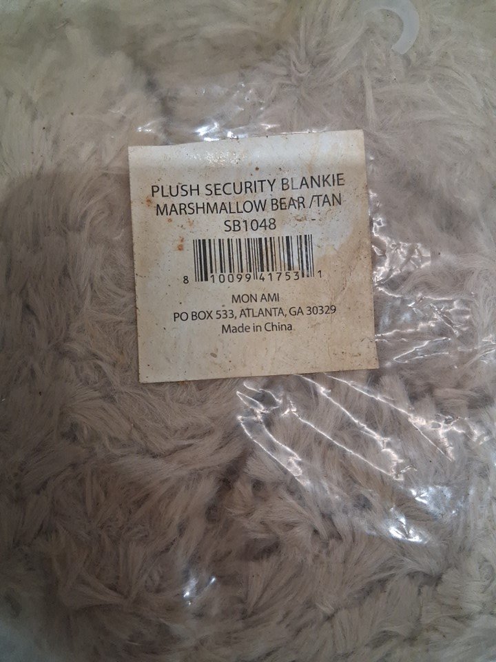 Mon Ami super soft premium textured faux fur Security Blankie bear - 15" - beige