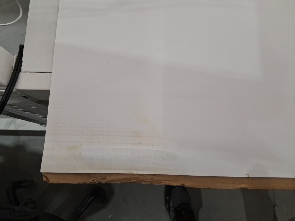 Bottom of packaging distressed, some sheets have staining as a result. (See photos)