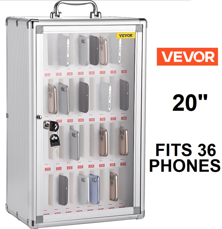 vevor aluminum cell phone cabinet storage locker - 20" - fits 36 phones - silver (MODEL: sy606-36)