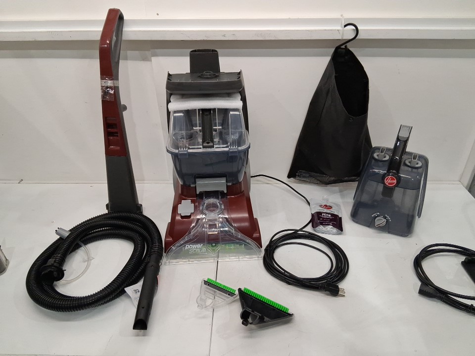 Hoover PowerScrub Deluxe Upright Carpet Cleaner with SpinScrub® 360° Multi‑Directional Brushes, Dual‑Tank System, HeatForce Rapid‑Dry Feature, Automatic Detergent Mixing, 20 ft Cord - red (MODEL: FH50150NC)