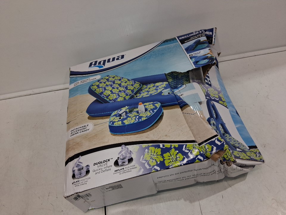Aqua Campania Ultimate 2-in-1 Pool Float Lounge with Adjustable Backrest & Cupholder Caddy - 250LB MAX - 56" X 36" - Aqua Royal Campania (MODEL:‎ AZL14856Z )