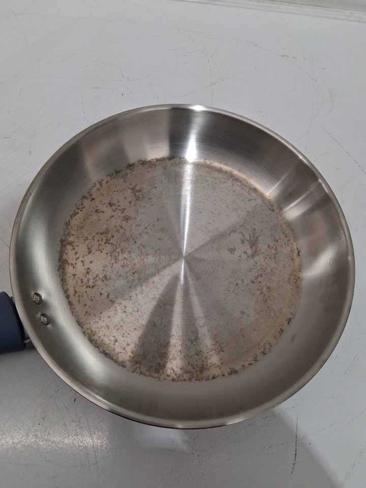 Item has some discoloration and residue from previous use. There are also some burn marks on the bottom (see photos for reference).