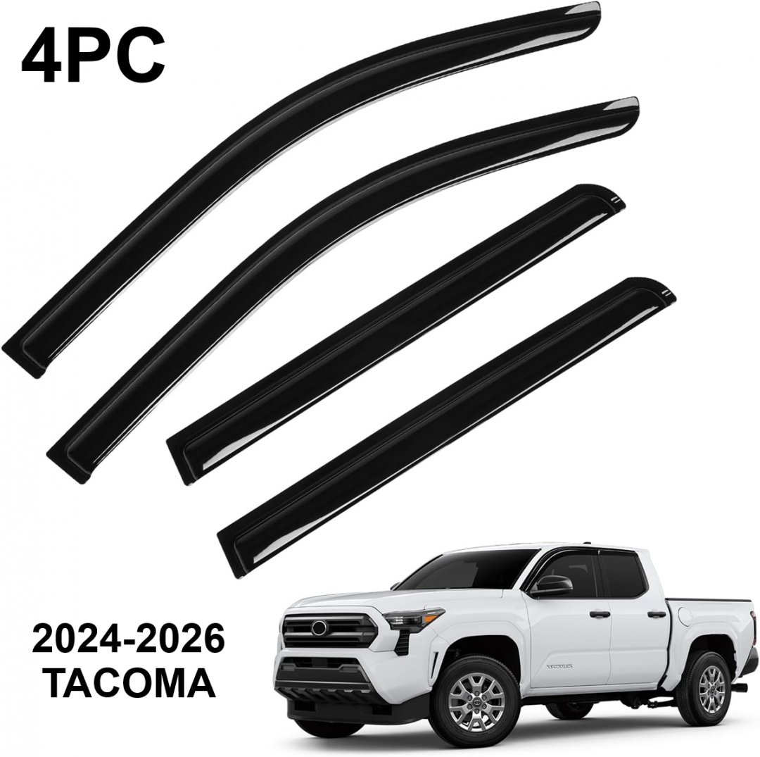 4PK fiilines in-Channel Side Window Visor Deflector Rain Guard, Fits 2016-2023 Toyota Tacoma Double Cab - Dark Smoke (MODEL: WV194768)