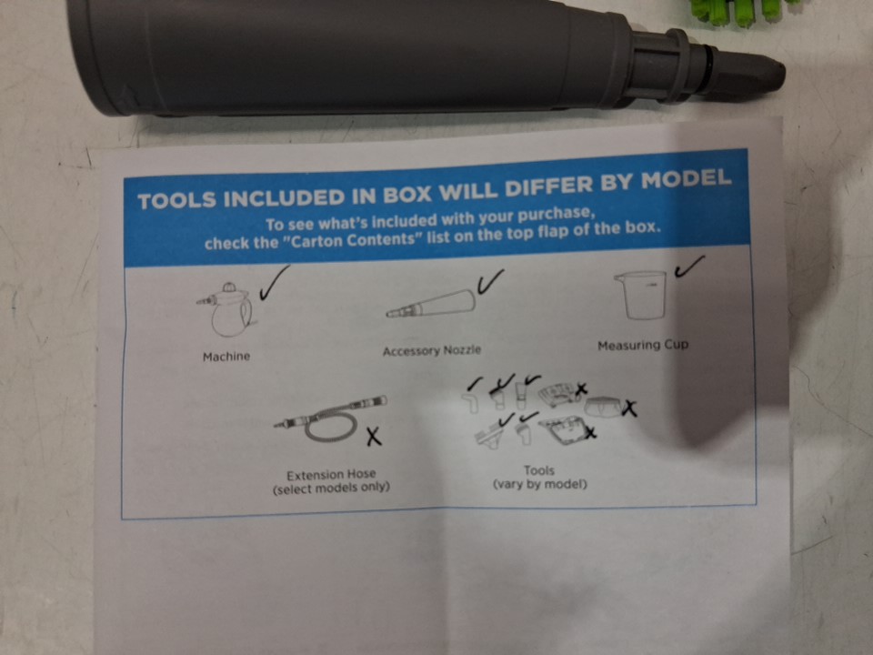 item is missing some accessories (please see last photo) the item and one of the brush accessories are dirty / bent indicating prior use item was tested for basic power only