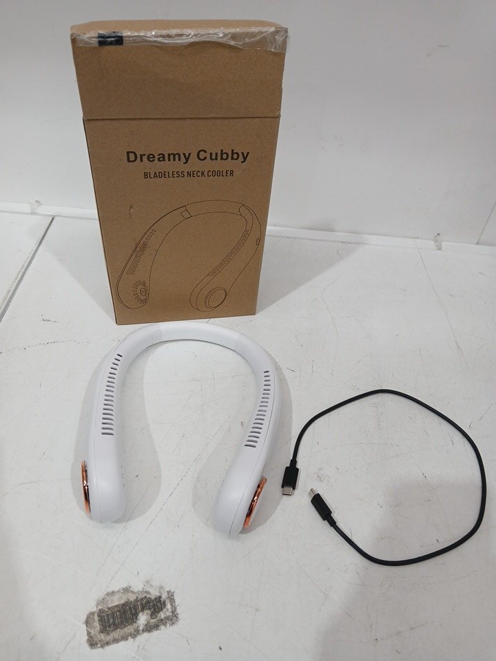 3-speed portable hands-free bladeless neck cooler fan with 360° cooling and rechargeable battery - 4000mah - white/gold