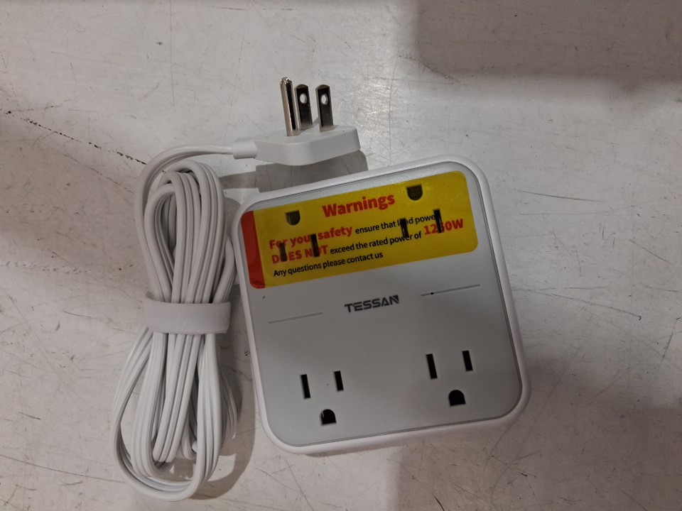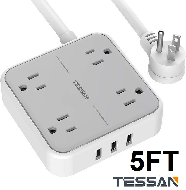 Tessan Flat Plug Power Bar with 3 USB Ports - 5FT - White/grey (Model: TS-102)