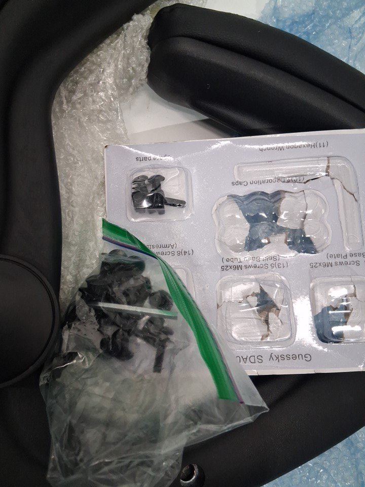 chair hardware is loose and pieces have tool blemishes from previously assembly