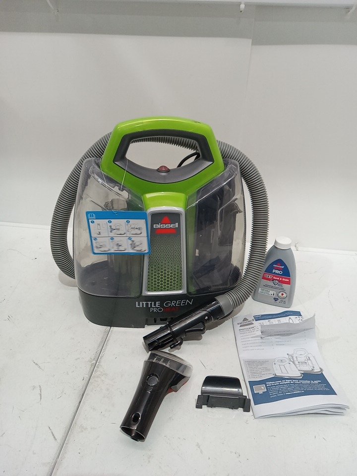 BISSELL LITTLE GREEN PROHEAT PORTABLE DEEP CLEANER/SPOT CLEANER WITH SELF-CLEANING HYDRORInSE TOOL - GREEN/GREY - (MODEL: 2513B / 2513n)