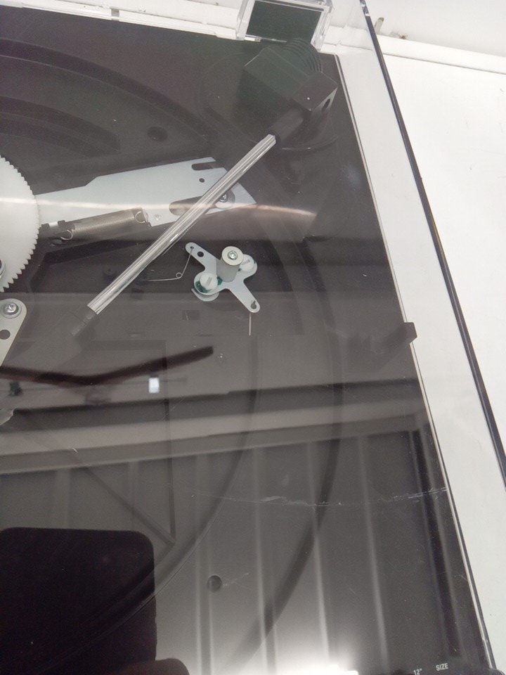 - needle is broken and needs to be replaced - lock on arm holder is gone - cover has a scratch - Item has dirt residue from demo/previous use - Item has been tested for power. Please see photos. - Item has no indicator light.