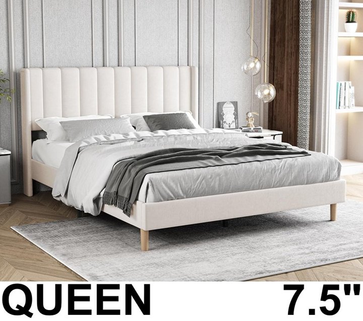 Zoophyter Upholstered Platform Bed Frame with headboard - QUEEN - WHITE